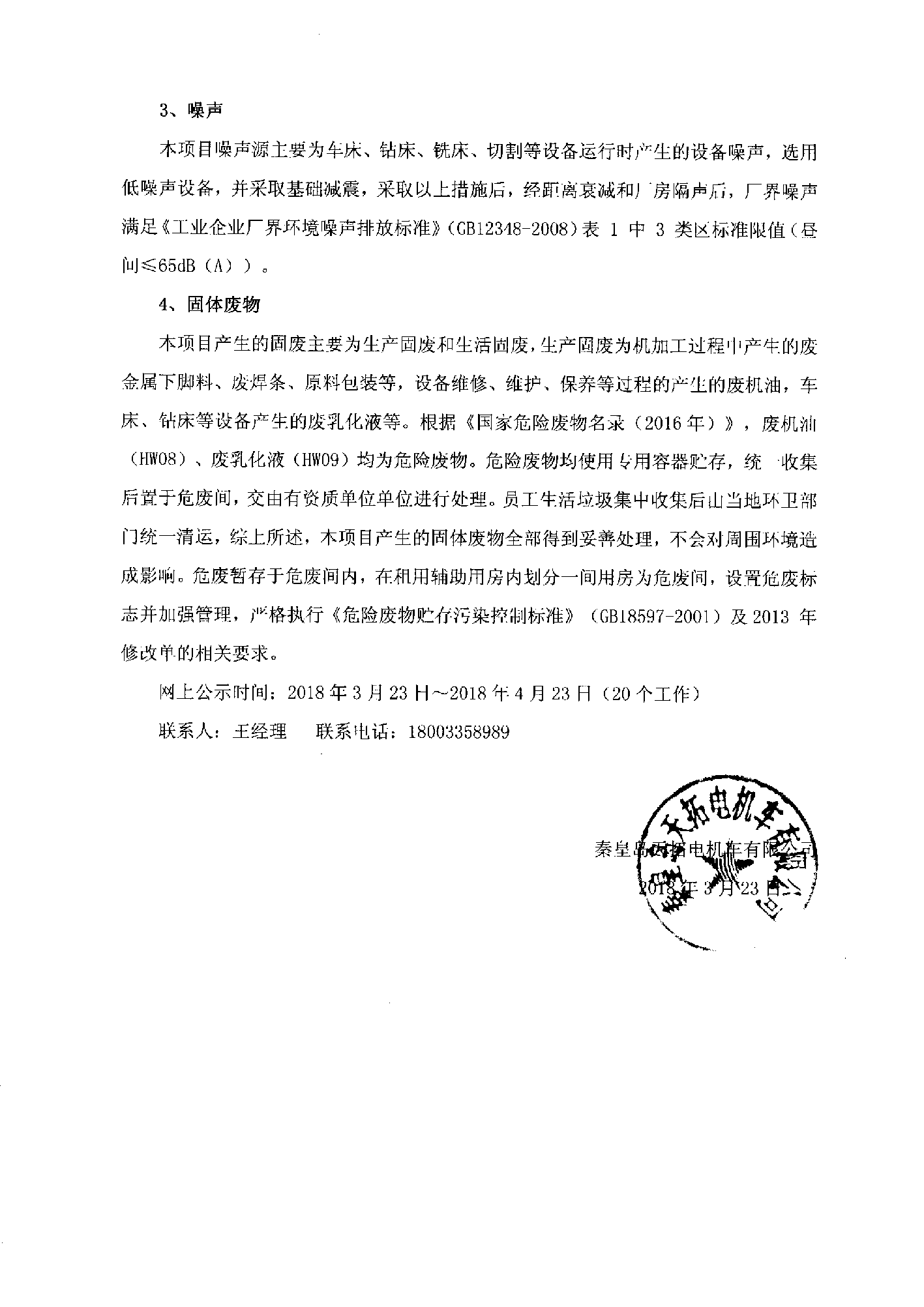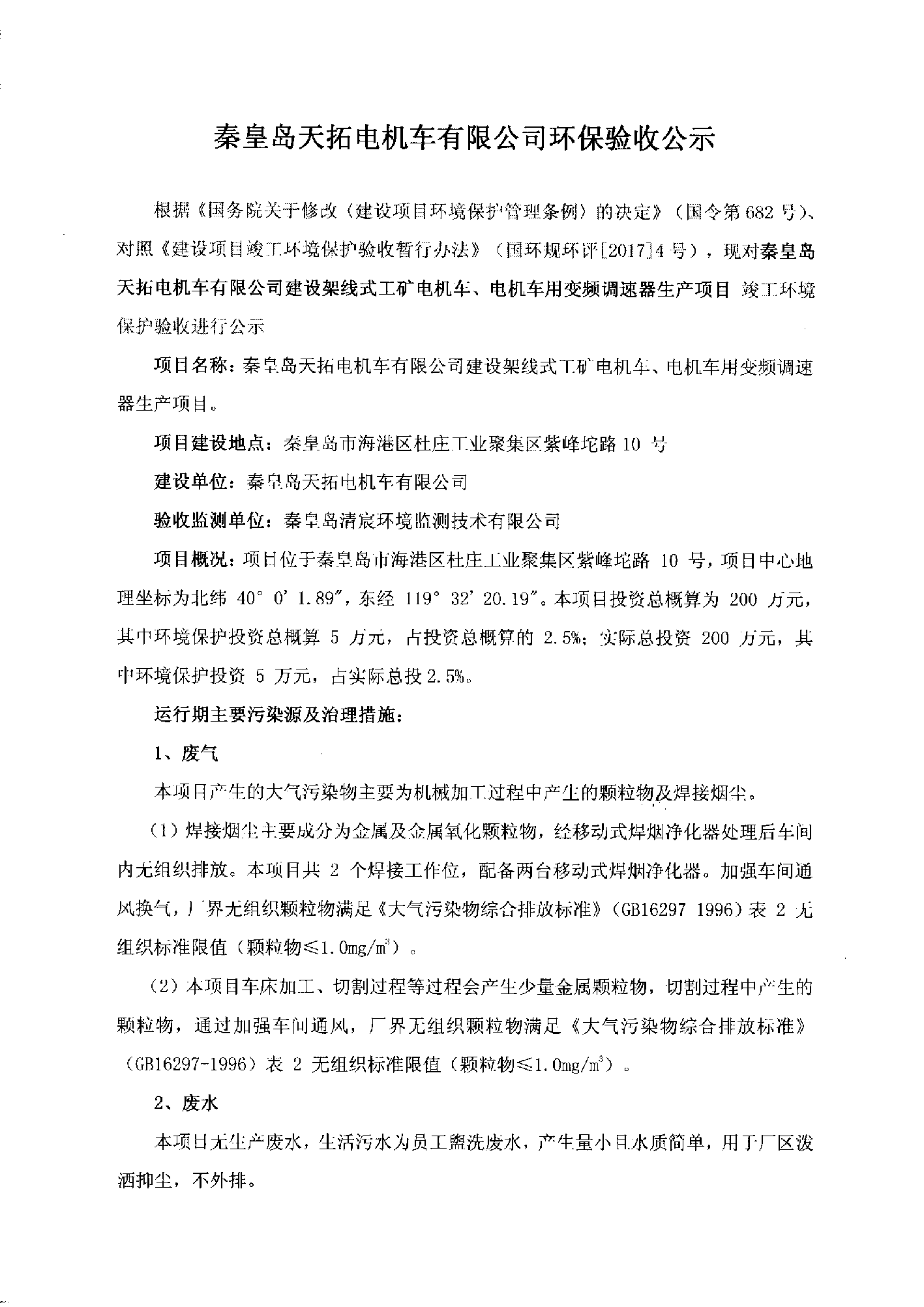 秦皇島天拓電機(jī)車有限公司環(huán)保驗(yàn)收公示